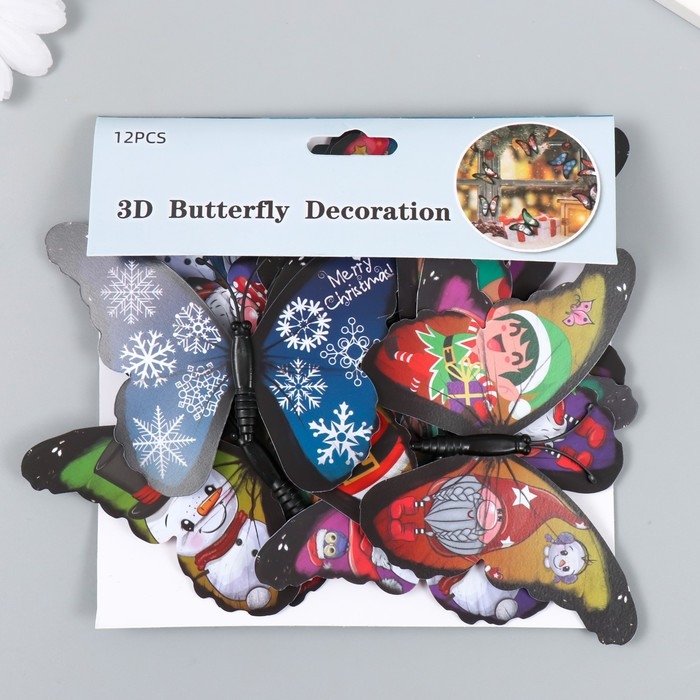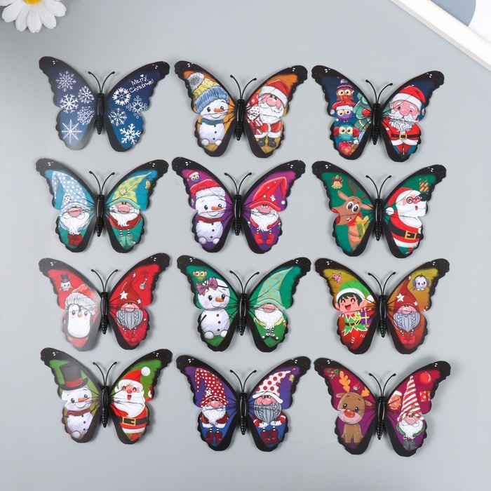 Магнит пластик "Бабочки. Зимняя сказка" набор 12 шт МИКС 10 см