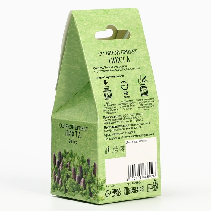Соляной брикет куб "Пихта" 200 г "Добропаровъ"