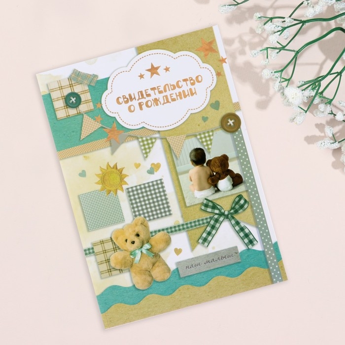 Свидетельство о рождении "Мишка" тиснение, А5