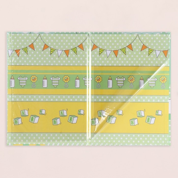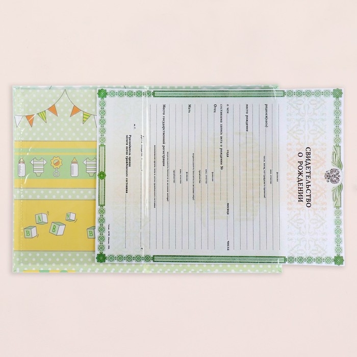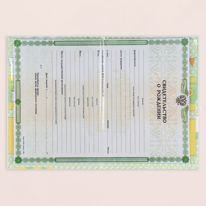 Свидетельство о рождении "Воздушные шары" тиснение, зеленый фон, А5