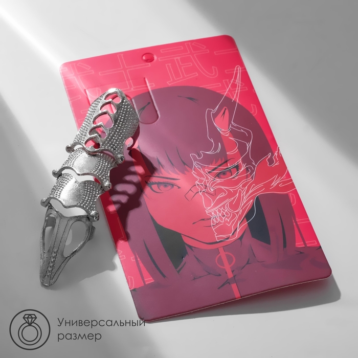 Кольцо «Япония» коготь с сердечками, цвет серебро, безразмерное