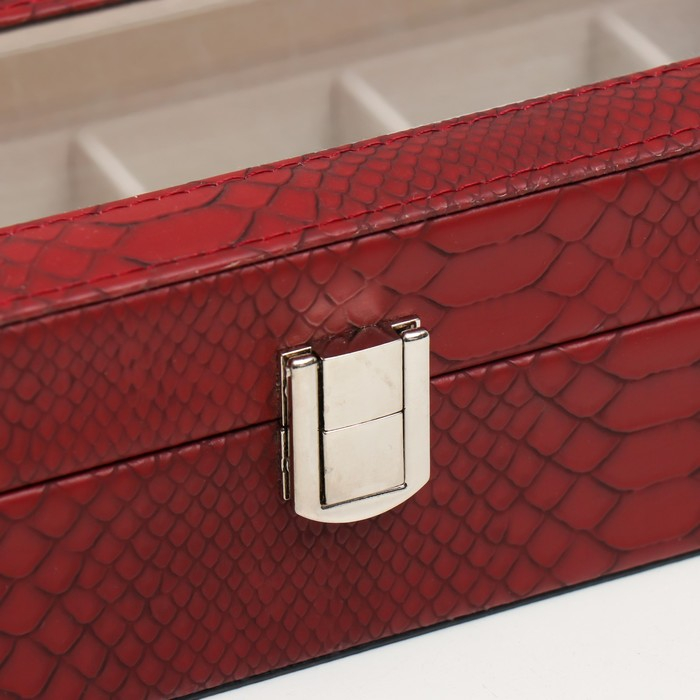 Шкатулка кожзам под часы 6 отделений "Питон бордовый с прожилками" 11х31х7,5 см