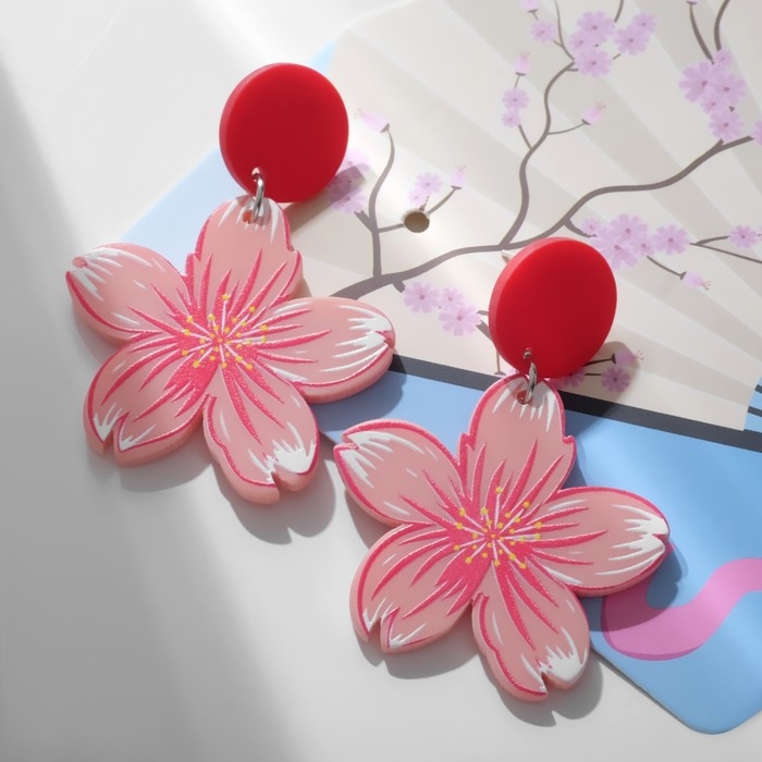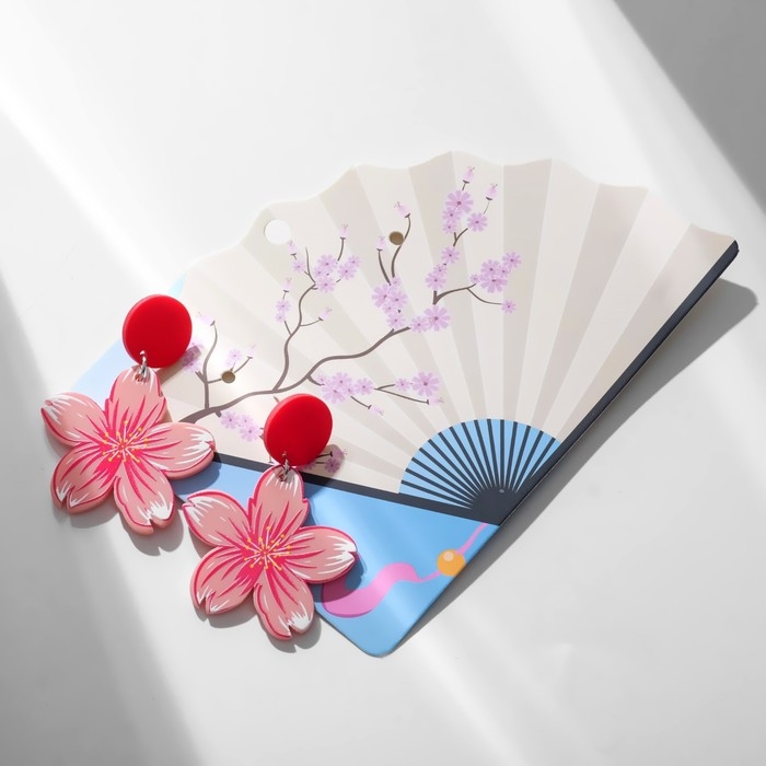 Серьги «Япония» сакура и овалы, цветные в серебре