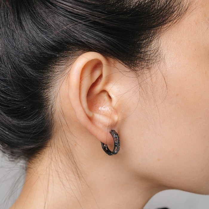 Моносерьга металл «Япония» резной дракон, цвет тёмно-серый