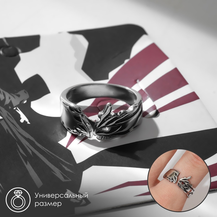 Кольцо «Япония» два лица, чёрный в серебре, безразмерное