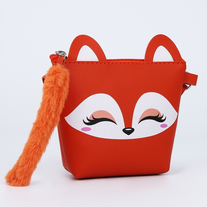 Сумка детская для девочки трапеция «Лисёнок» с хвостиком, 18х15х3.5см