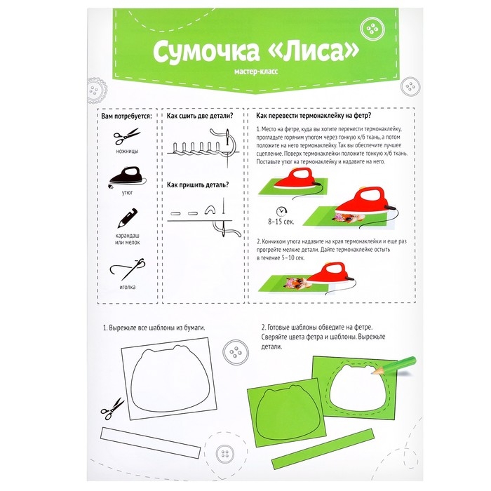Набор для создания сумки из фетра «Лисенок» с термонаклейкой
