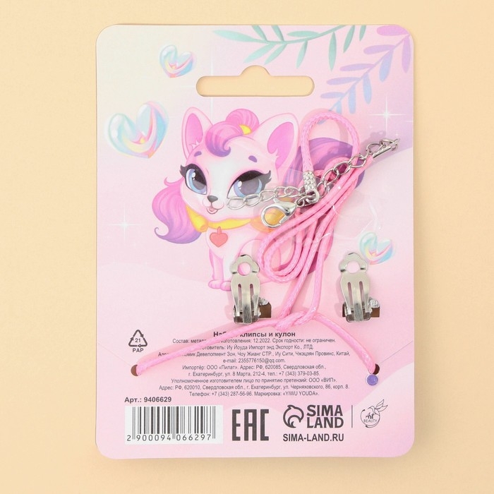 Бижутерия «Я девочка» набор для девочек: серьги клипсы и кулон , 8 х 9 см