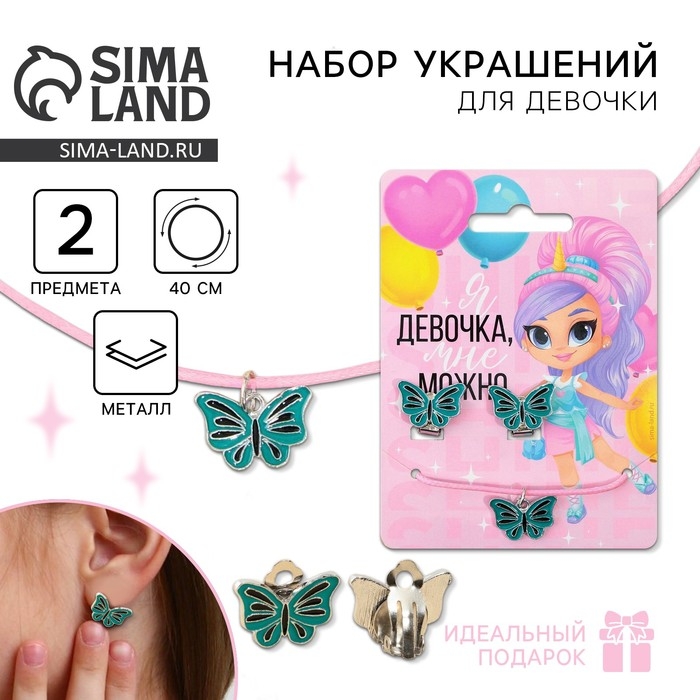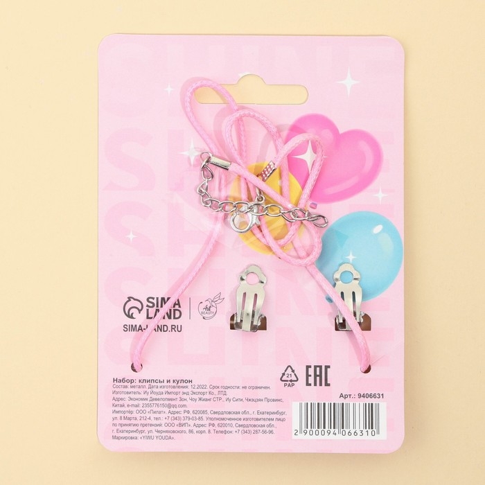 Бижутерия «Я девочка» набор для девочек: серьги клипсы и кулон , 8 х 9 см