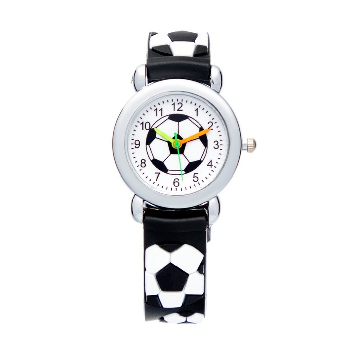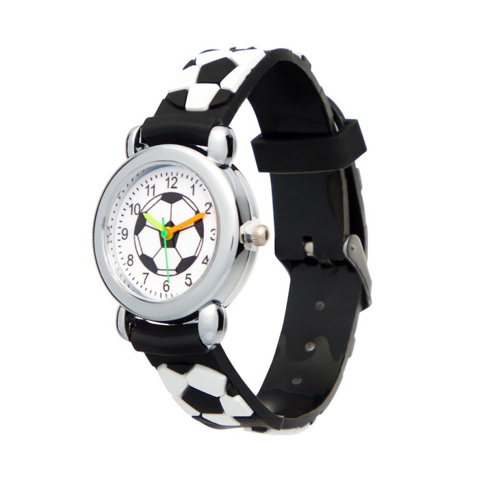 Яркие детские наручные часы - модный аксессуар для девочек с важным функциональным предназначением. Благодаря наличию такого типа часов ребенок научится распознавать время и планировать свои дела. Циферблат с футбольным мячом однозначно заинтересует любого мальчика.
