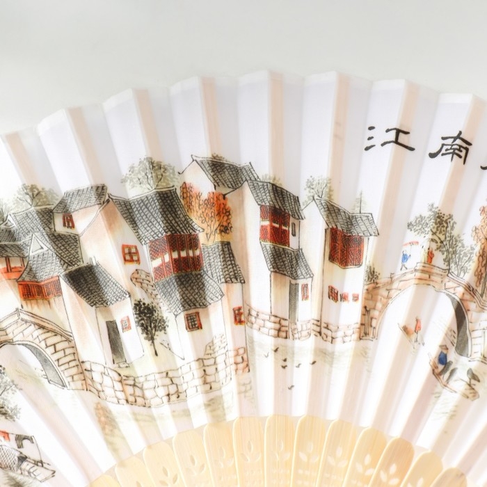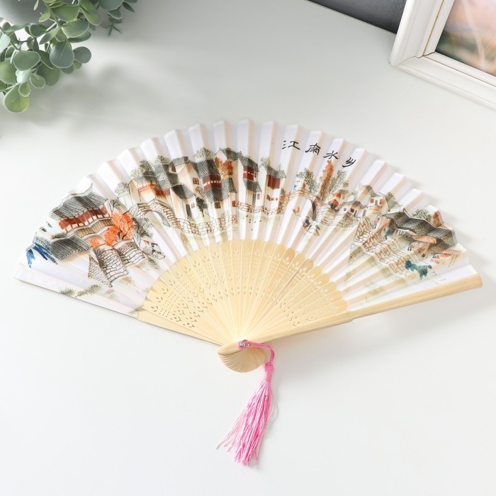 Веер дерево, текстиль h=21 см "Город" цветной, с кисточкой