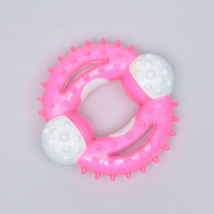 Игрушка двухслойная (твердый и мягкий пластик) "Кольцо с шипами", 10 см, розовая