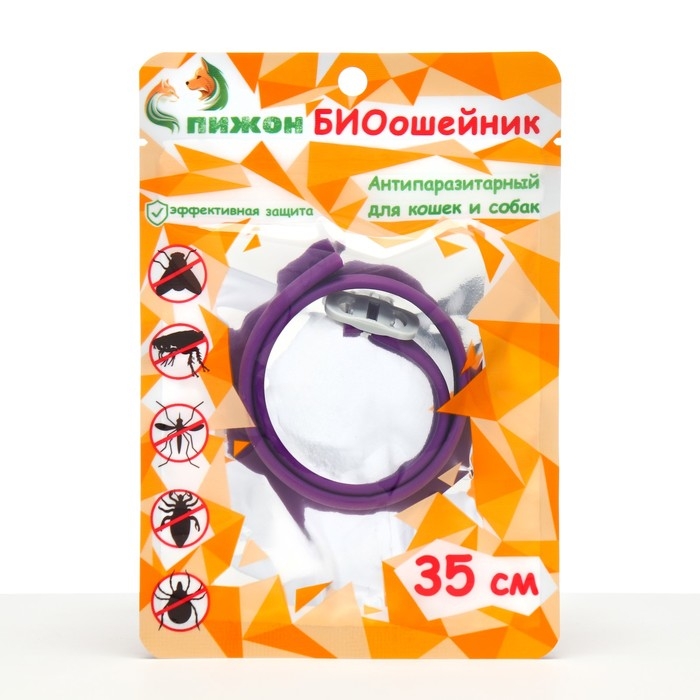 Биоошейник "ПИЖОН" для кошек и маленьких собак, от блох и клещей, фиолетовый, 35 см