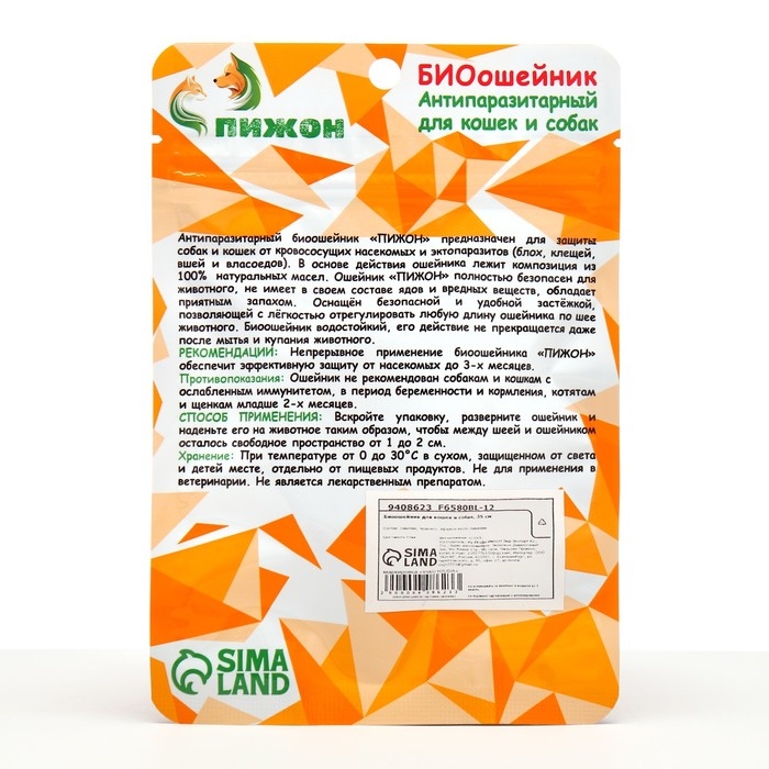 Антипаразитарный биоошейник ПИЖОН предназначен для защиты собак и щенков от кровососущих насекомых, и эктопаразитов (блох, клещей, вшей и власоедов).