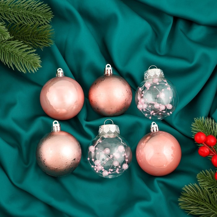 Набор шаров пластик d-6 см, 6 шт "Мэдисон" бусинки, розовый