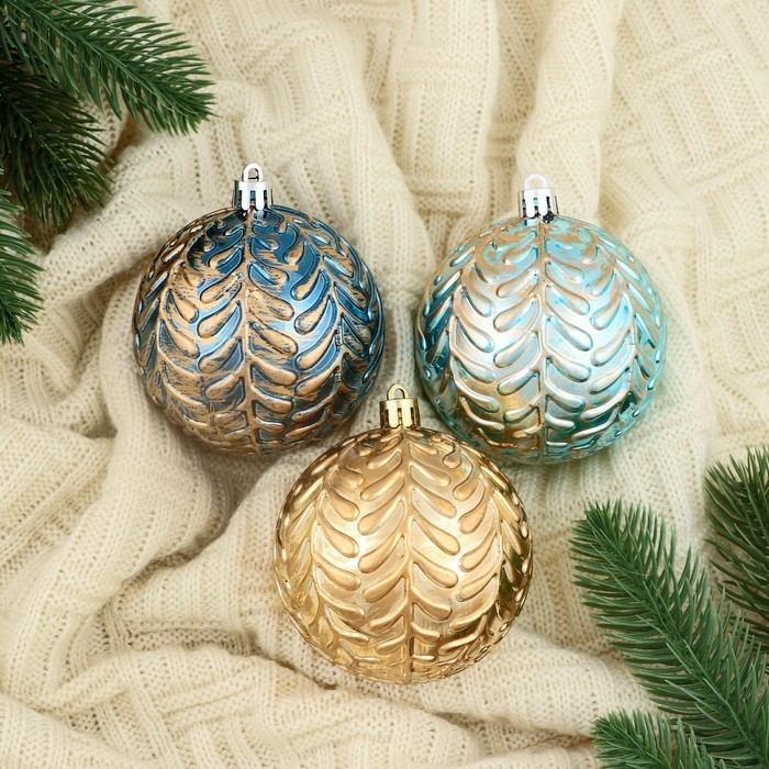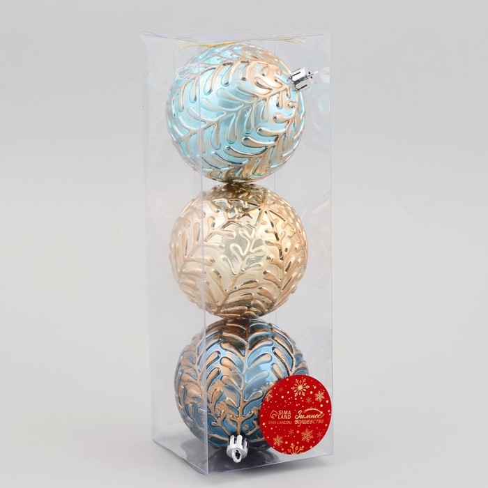 Набор шаров пластик d-8 см, 3 шт "Мадлен" веточки, микс