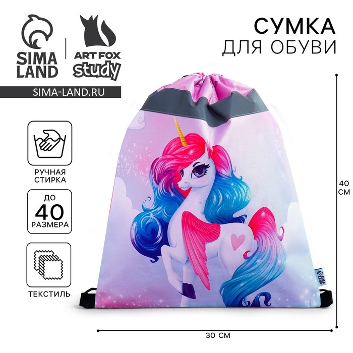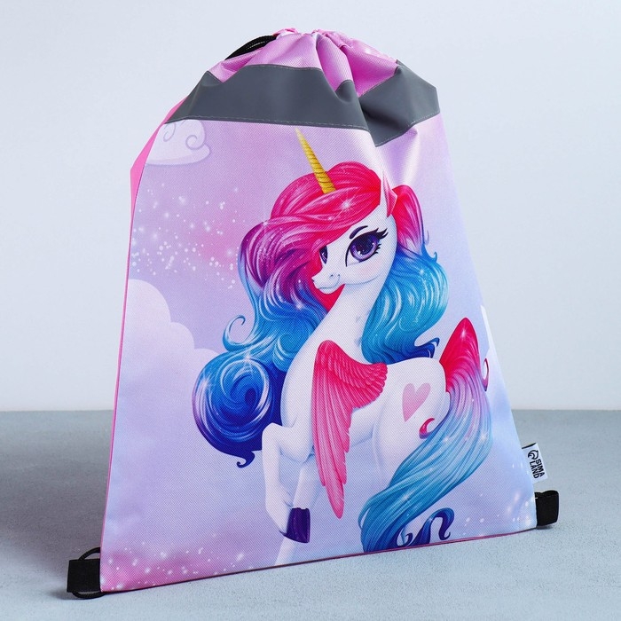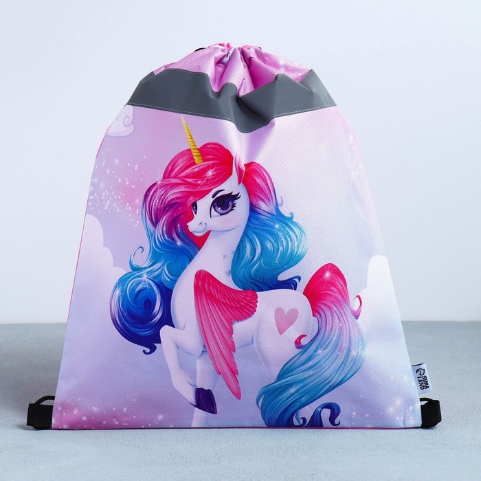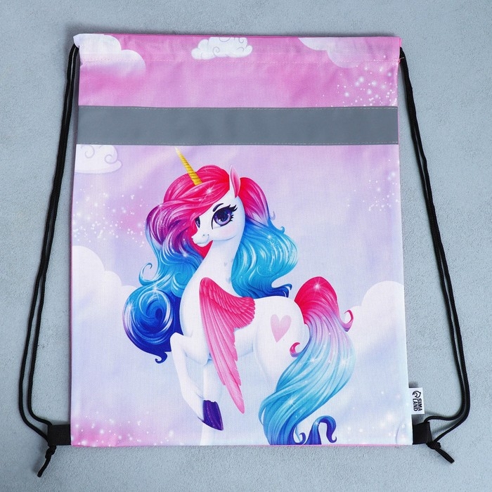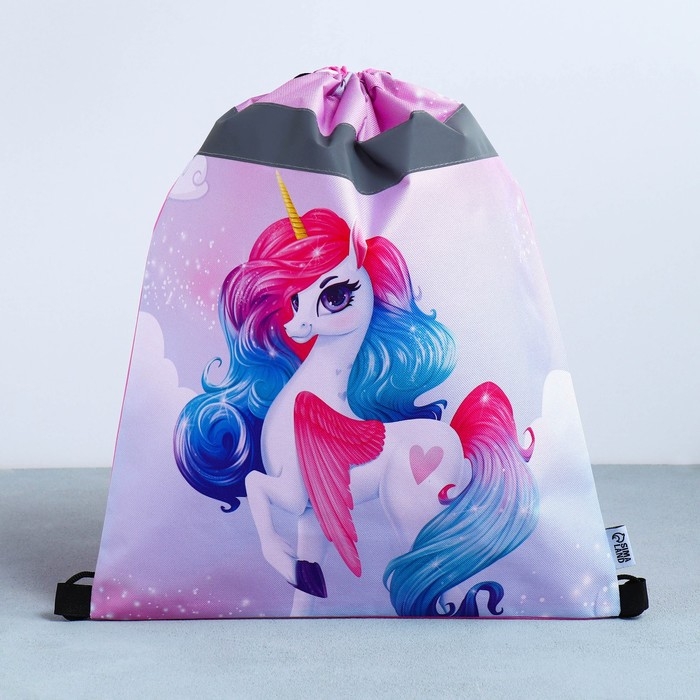 Мешок для обуви со светоотражающим элементом «Радужный единорог» 30 х 40 см