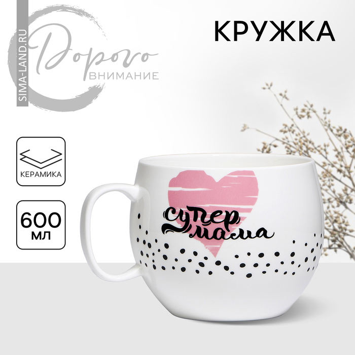 Кружка керамическая XXL «Супер мама», 600 мл , цвет белый