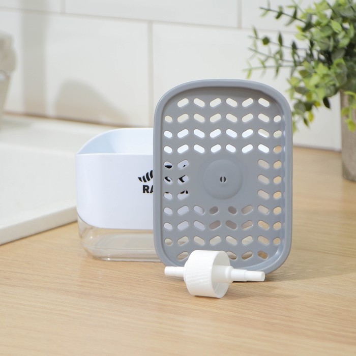 Дозатор для моющего средства с подставкой для губки Raccoon, 550 мл, губка в комплекте, цвет белый