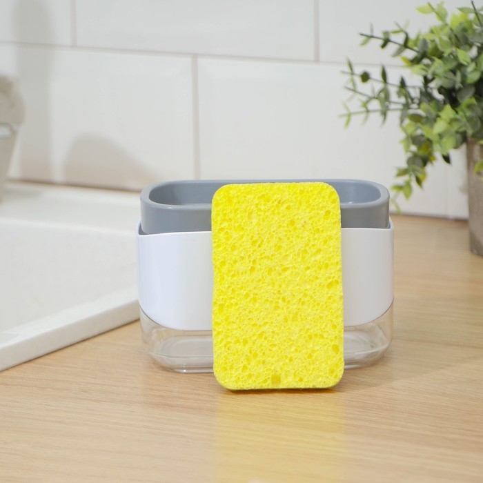 Дозатор для моющего средства с подставкой для губки Доляна, губка в комплекте, 385 мл, цвет белый