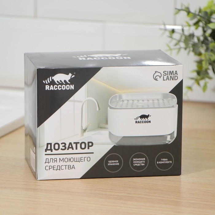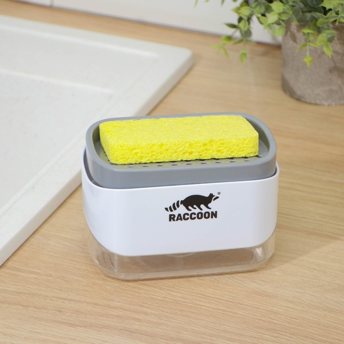 Дозатор для моющего средства с подставкой для губки Raccoon, губка в комплекте
