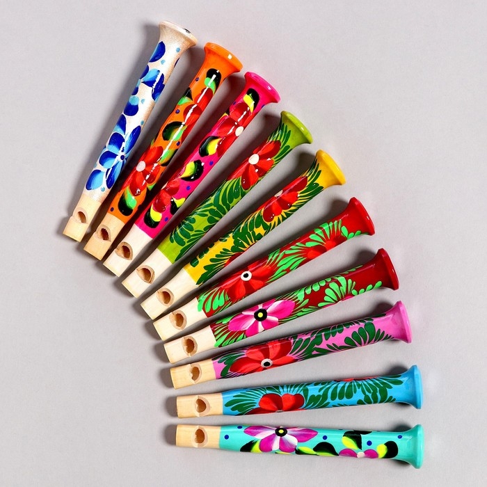 Дудочка — это первый шаг ребёнка в мире музыки. А ещё это красивый и яркий инструмент, который порадует любого малыша. Играть на нём очень просто: нужно дуть в отверстие и прикрывать пальцами дырочки, которые расположены в верхней части.