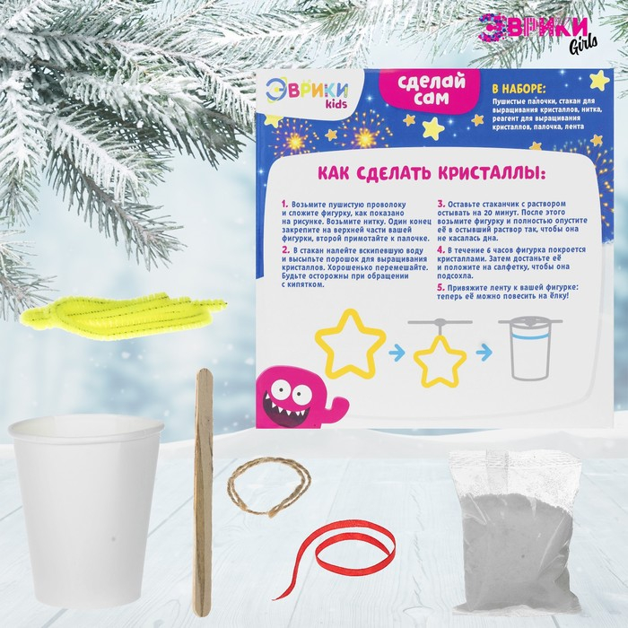 С набором «Звездочка» ребёнок увидит, как растут кристаллы! Этот процесс не просто интересен — он завораживает, а готовый результат станет настоящим украшением детской комнаты.