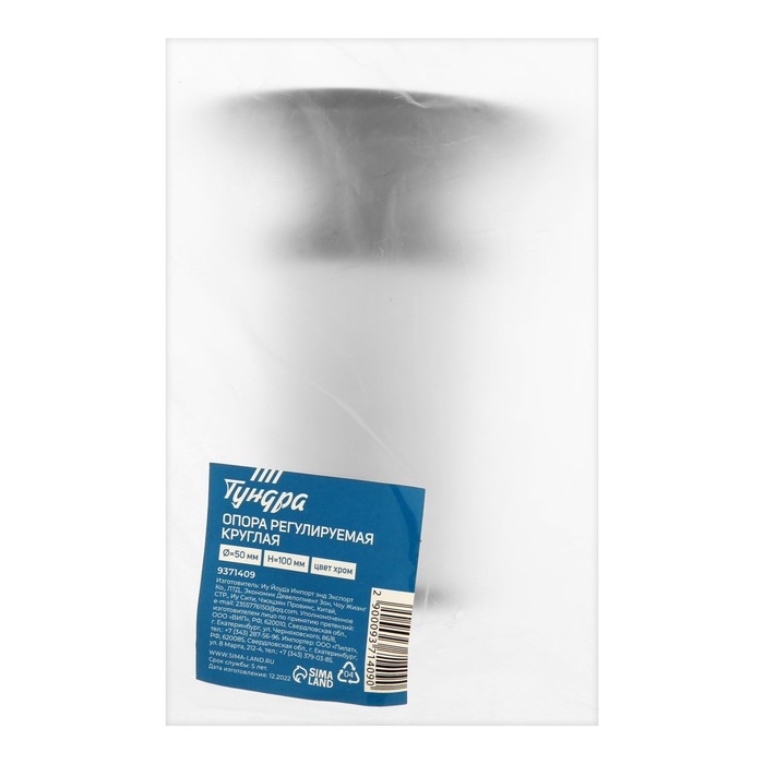 Опора регулируемая OR001CR ТУНДРА, d=50 мм, H=100 мм, цвет хром