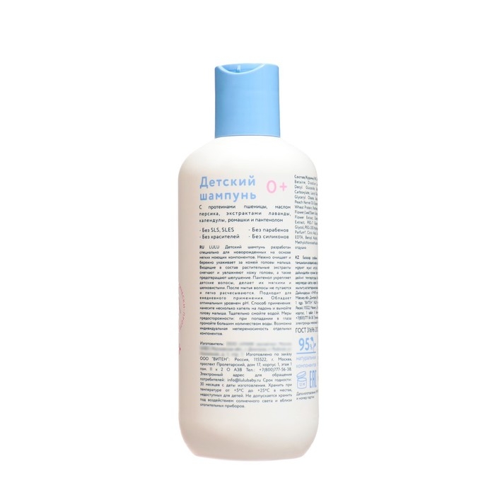 Шампунь детский LULU с протеинами пшеницы, без парабенов, без силиконов, 300 мл