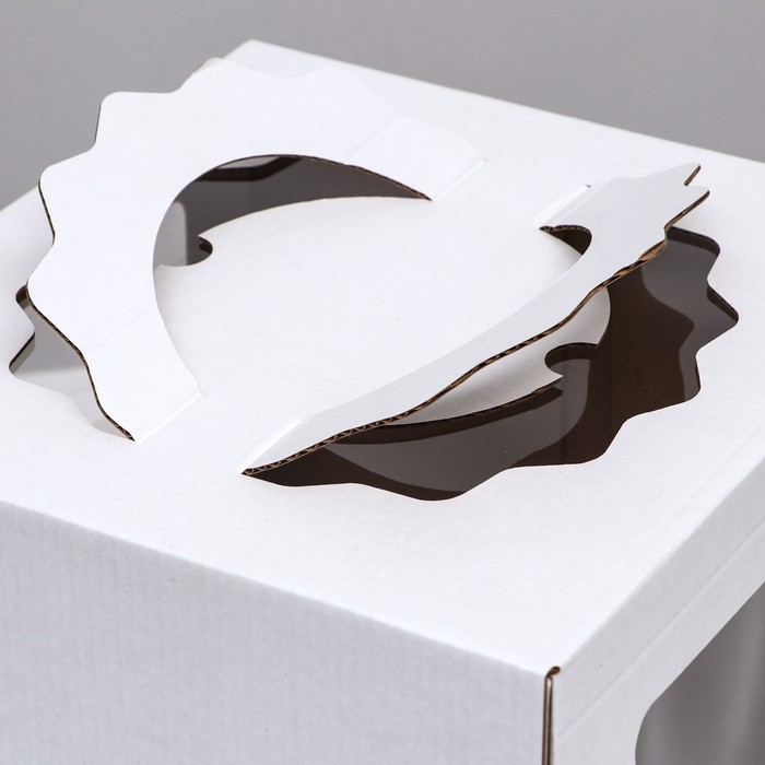 Коробка под торт, белая, с окном, 18 х 18 х 22 см