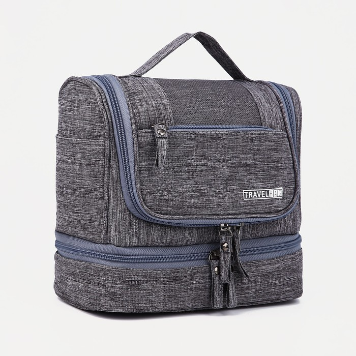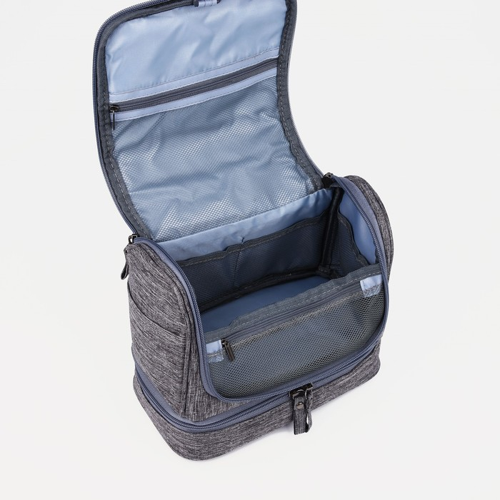 Косметичка, 2 отдела на молниях, цвет серый