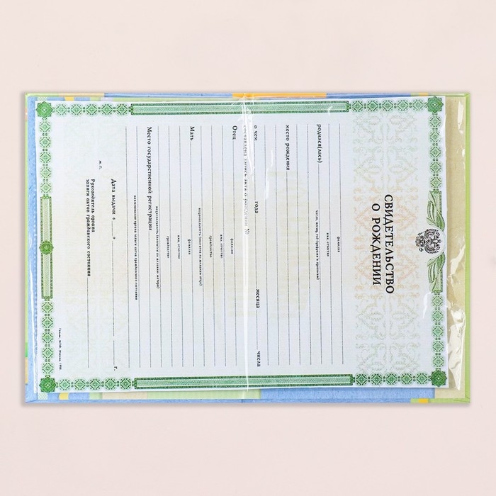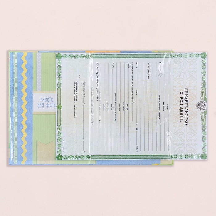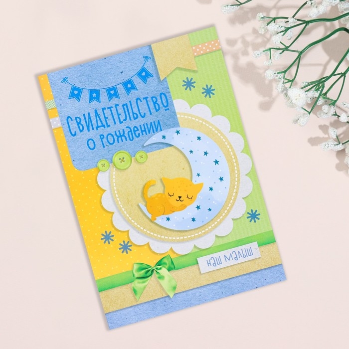 Свидетельство о рождении "Месяц" тиснение, зеленый бант, А5