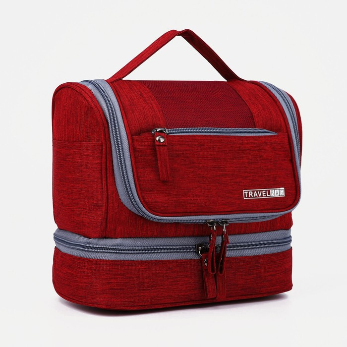 Косметичка, 2 отдела на молниях, цвет бордовый