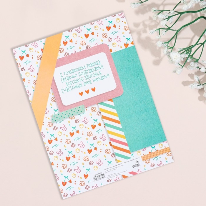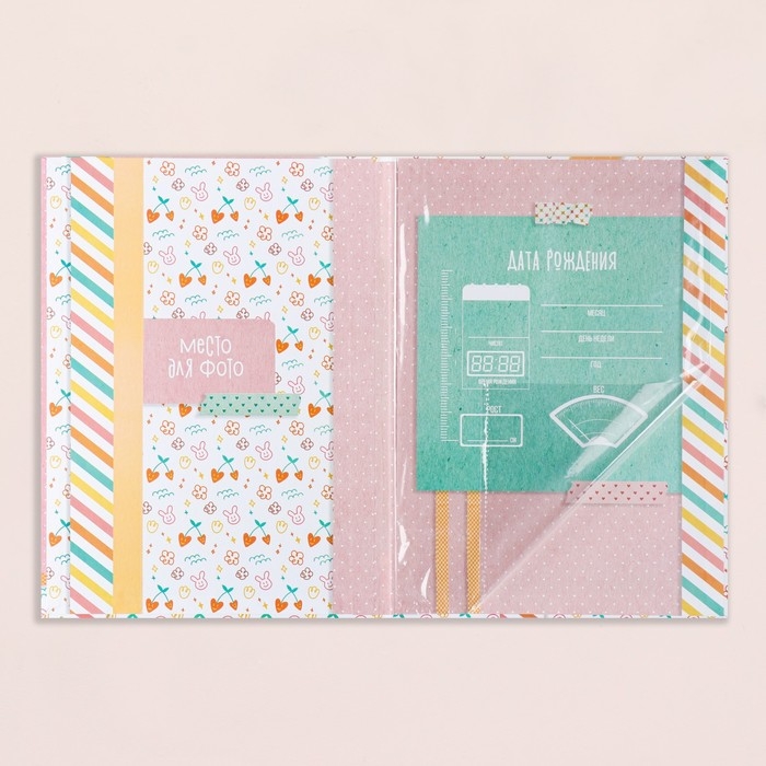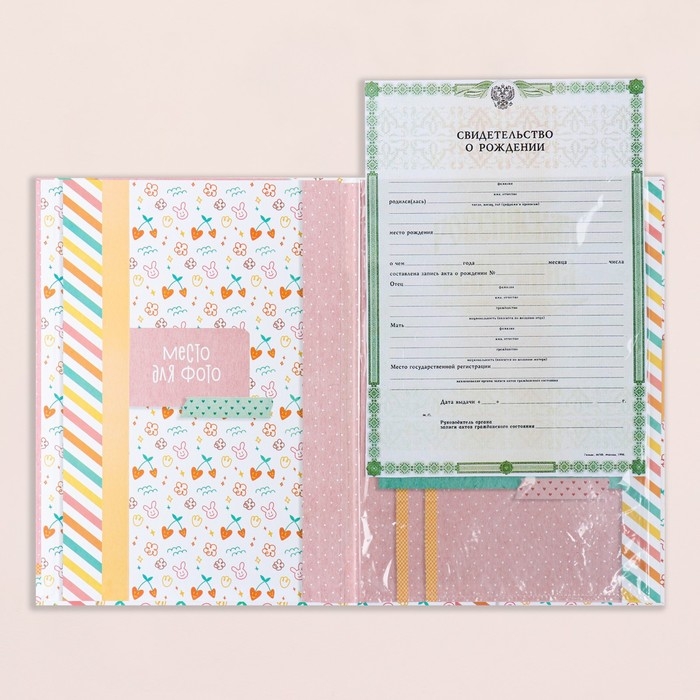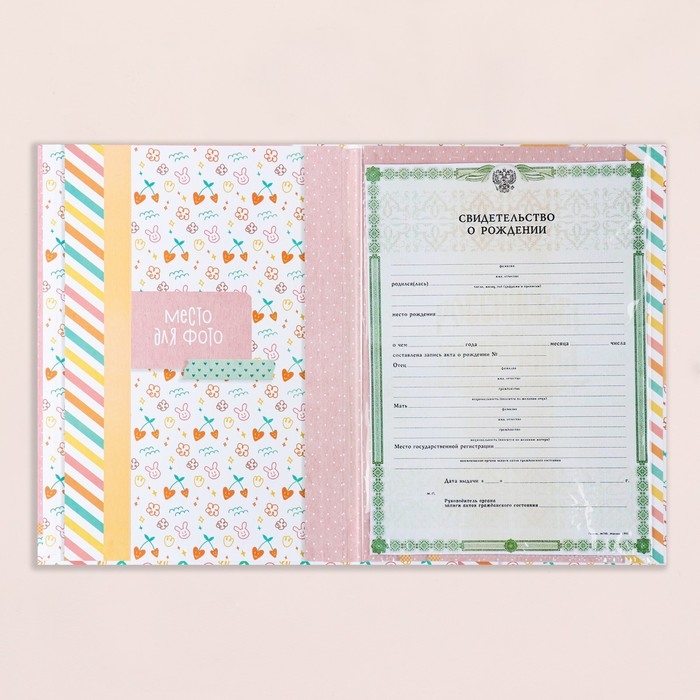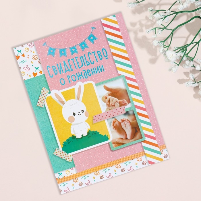 Свидетельство о рождении "Кролик" тиснение, розовый тон, А4