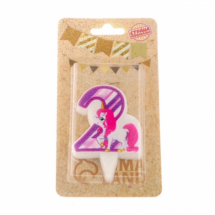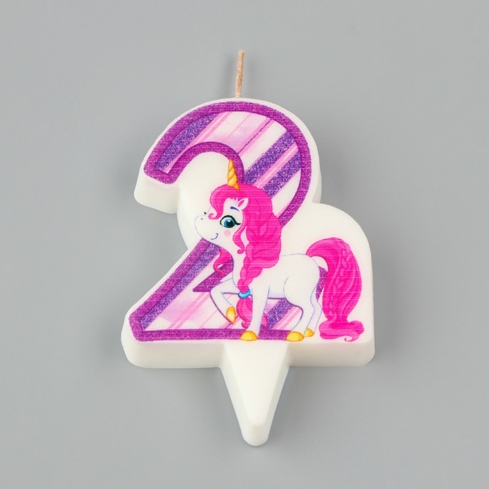 Свеча в торт "Единорог", цифра 2, фиолетовая, 6,5 см