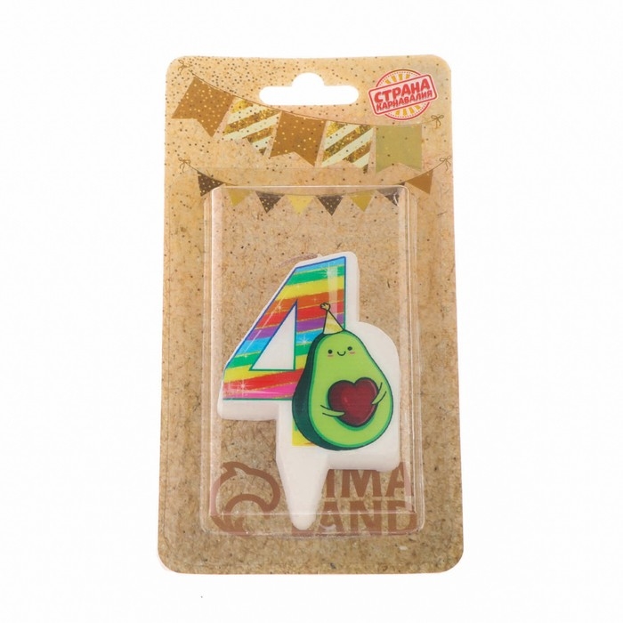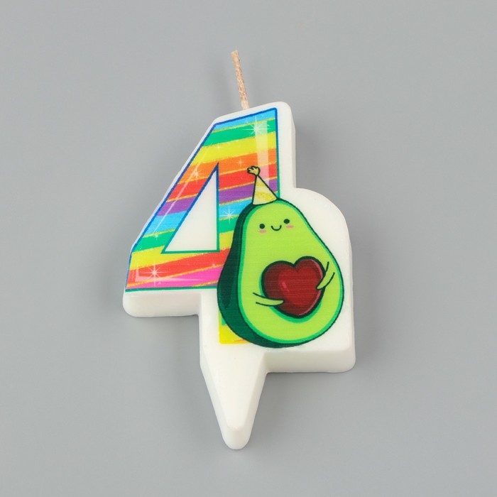 Свеча в торт "Авокадо", цифра 4, 6,5 см
