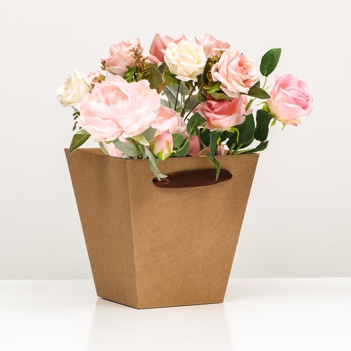 Сумка для цветов крафт влагостойкая, 17x17-11.5x11.5-20