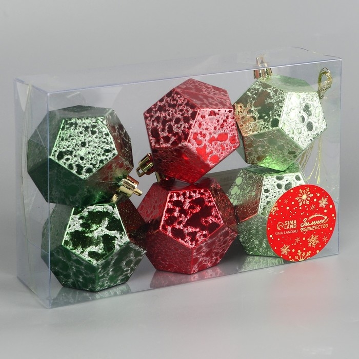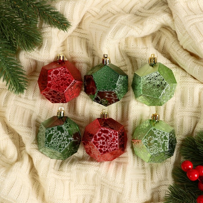 Набор шаров пластик d-6 см, 6 шт "Эйвери" геометрия грани, зелёный красный