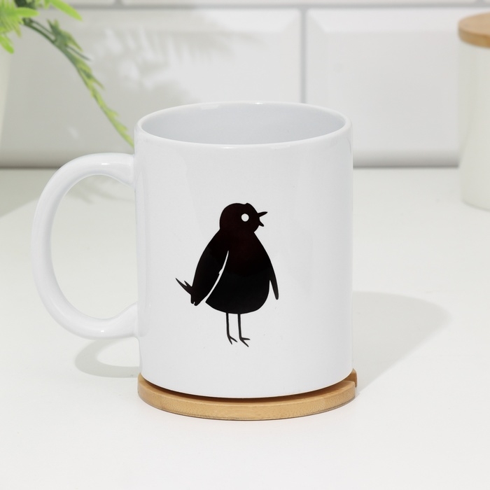Кружка изготовлена из керамики. Рисунок нанесён методом сублимации, при котором краска проникает в верхний слой изделия, поэтому изображение получается стойким.