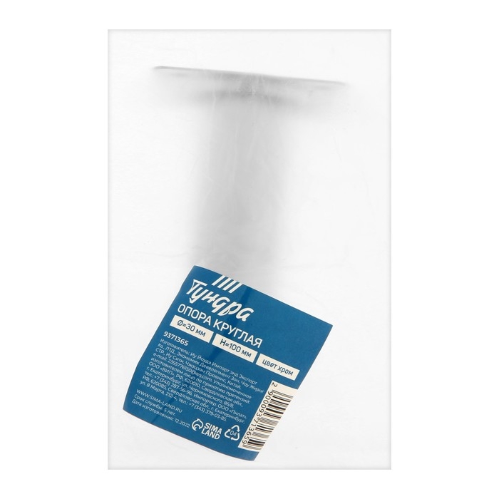 Опора круглая OKR001CR ТУНДРА, d=30 мм, H=100 мм, цвет хром