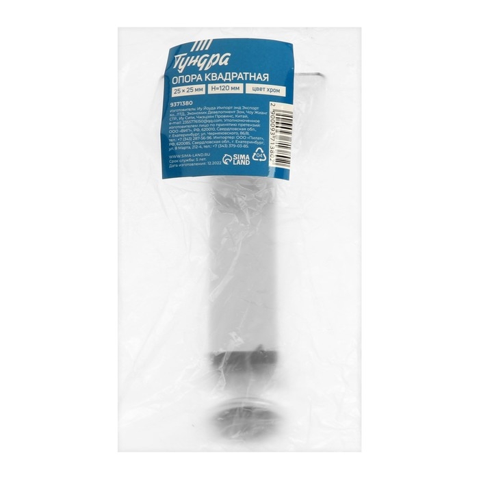 Опора квадратная OKV001CR ТУНДРА, d=25х25 мм, H=120 мм, цвет хром
