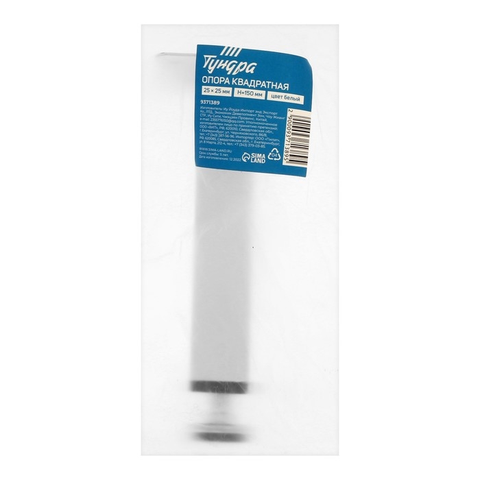 Опора квадратная OKV001WH ТУНДРА, d=25х25 мм, H=150 мм, цвет белый