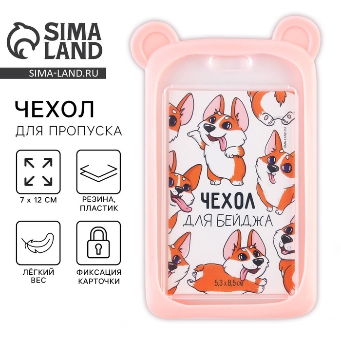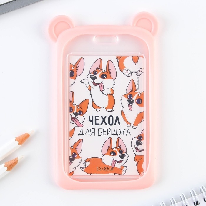 Чехол для бейджа с ушками «Мишка», 7 х 12 см