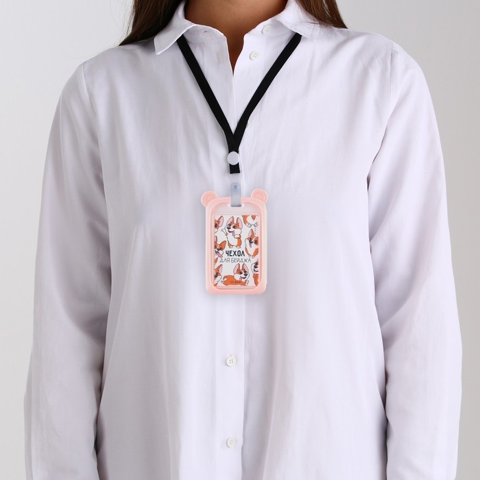 Бейдж горизонтальный, внешний 100 х 80мм, внутренний 52 х 82мм, лента 42 см, Корги