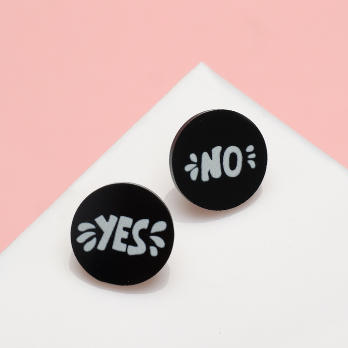 Серьги акрил «Да/Нет» пусеты, цвет чёрно-белый в серебре