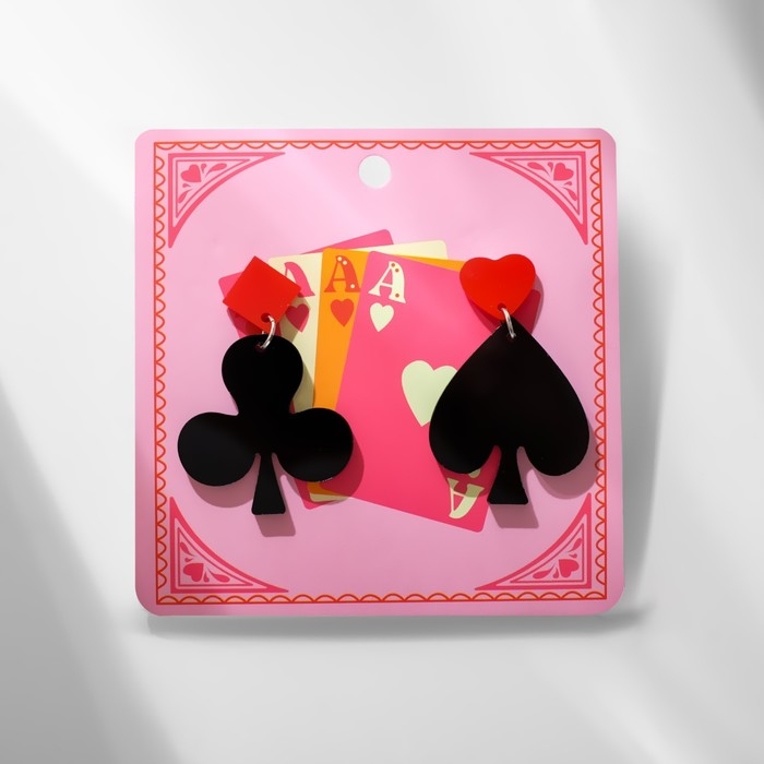 Серьги акрил «Масти», цвет чёрно-красный в серебре