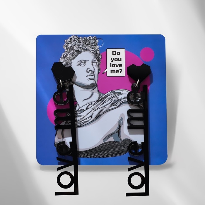 Серьги акрилLOVE ME с сердечком, цвет чёрный в серебре