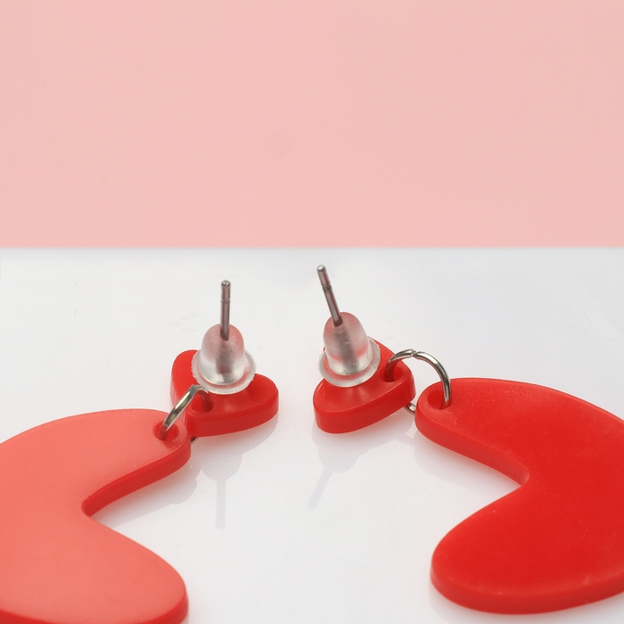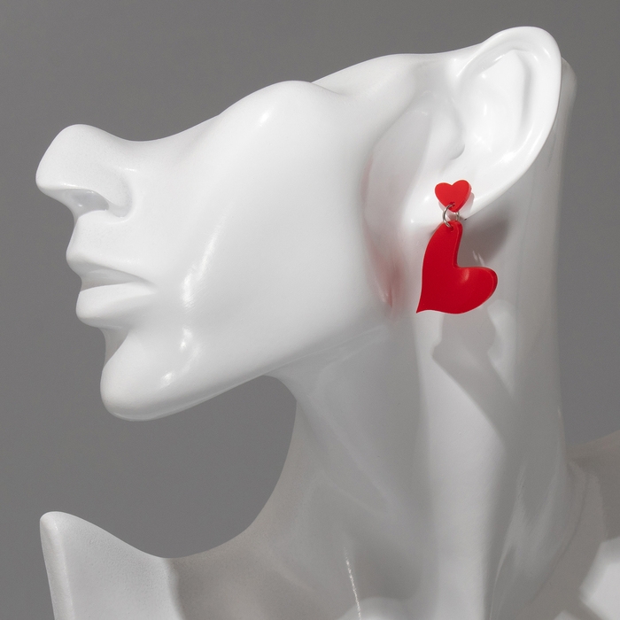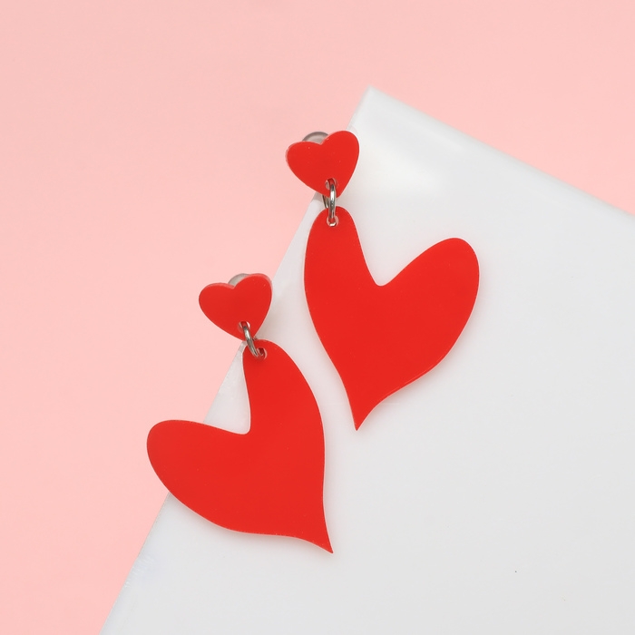 Серьги акрил «Сердце к сердцу», цвет красный в серебре