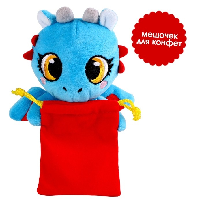 Игрушка мягкая «Дракончик», голубой, с мешочком для конфет
