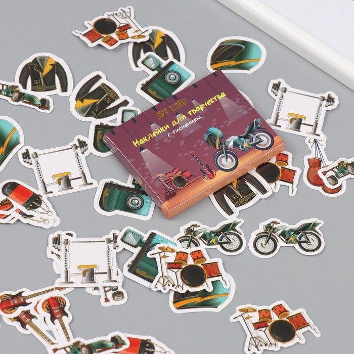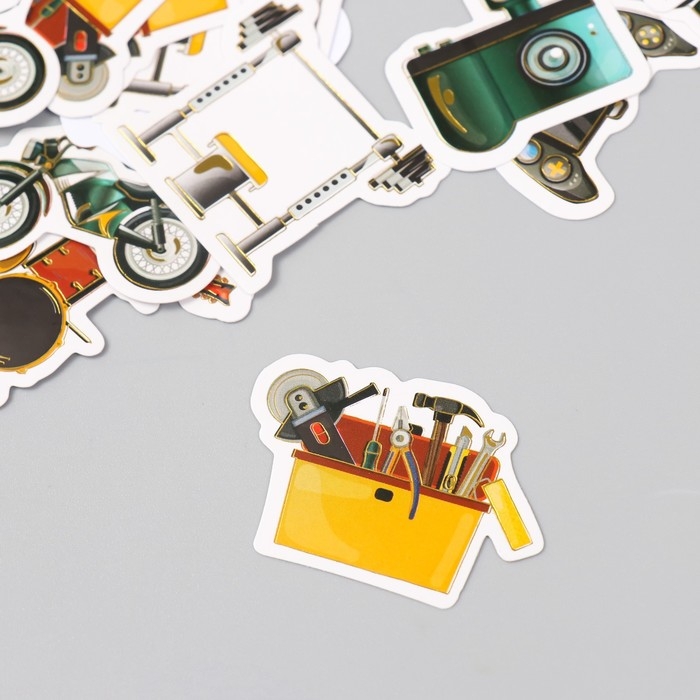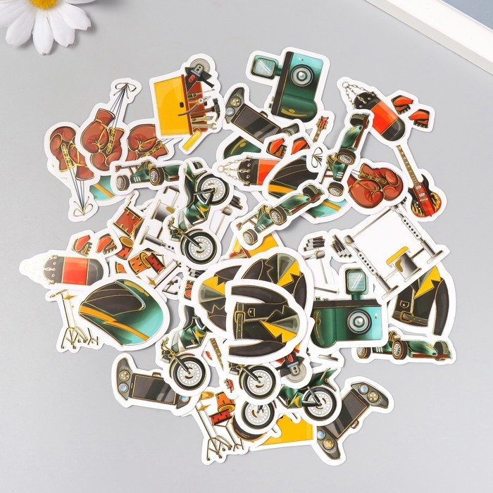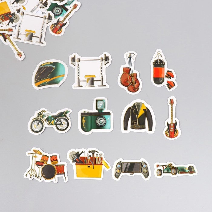 Наклейки для творчества "Мужские увлечения" тиснение серебро набор 48 шт 9х7х0,8 см